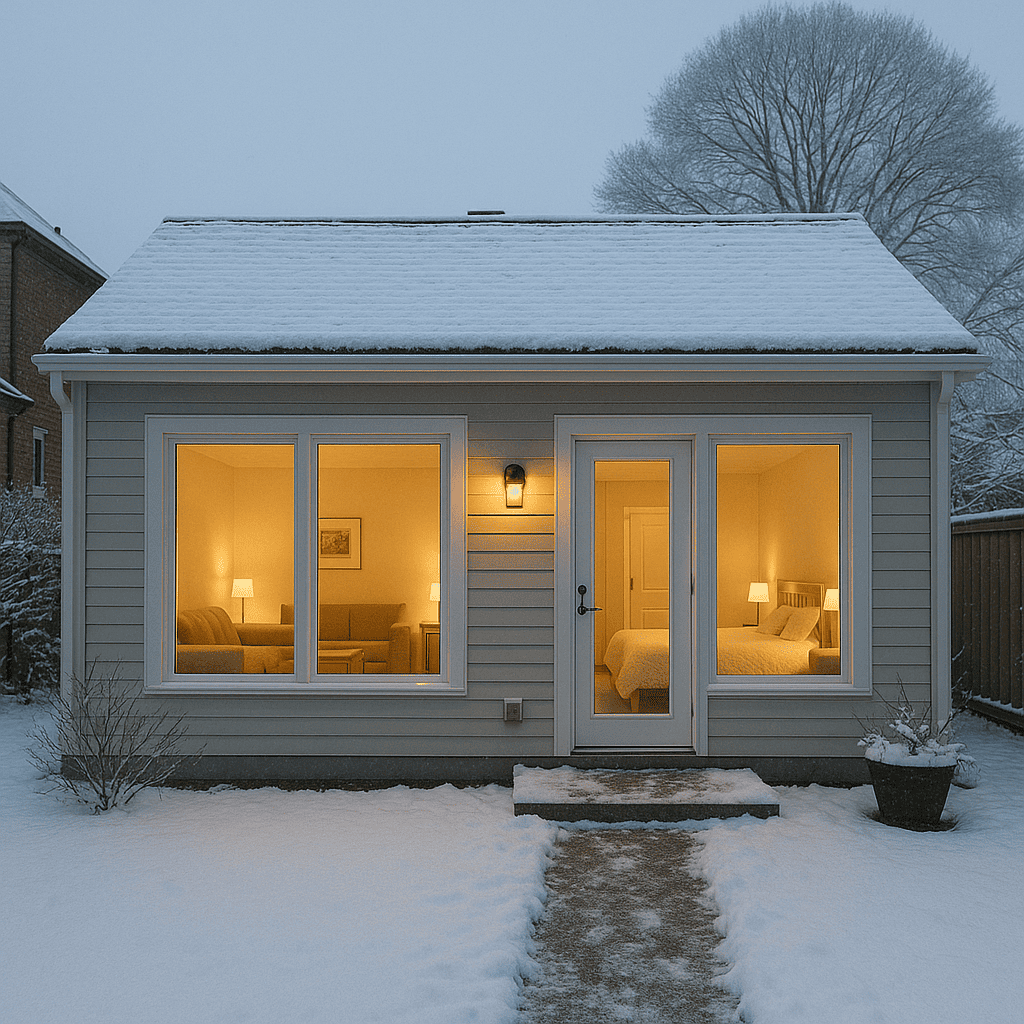 Absolutely. Our garden suites are designed to be fully self-contained homes, complete with all the modern comforts you’d expect. Each suite includes heating, air conditioning, a full kitchen, bathroom, and even optional features like heated floors. Whether you’re building it for family, guests, or rental purposes, it’s a proper home – just steps away from your main house.